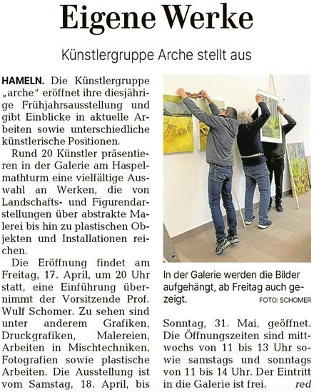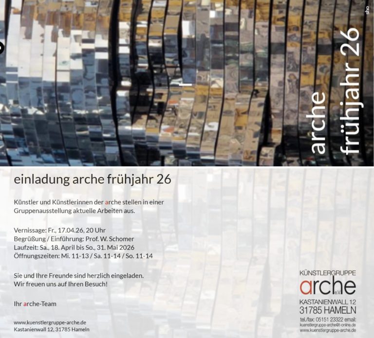 für die arche sehr erfolgreichen Ausstellungsjahres mit einigen Ausstellungshöhepunkten und mit gestiegenen Verkaufs– und Besucherzahlen. Was bedeutet, dass die harten Coronafolgen endlich zur Vergangenheit gehören. Die positive Entwicklung ist letztlich auch darauf zurückzuführen, dass die Stadt Hameln ihrer arche in sehr schwierigen Zeiten stets hilfreich zur Seite gestanden hat!